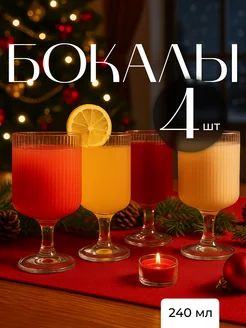 Бокалы для вина и коктейлей стеклянные на ножке, набор 4 шт