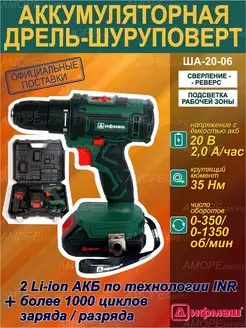 Аккумуляторная дрель-шуруповерт ША-21-01М, 2 АКБ, ЗУ, кейс