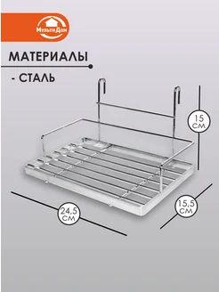 Полка для кухни на рейлинг 35х7,5х12 см металл хром