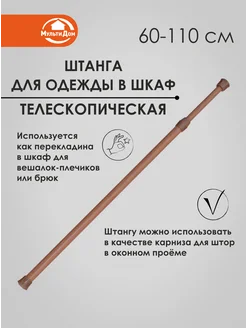 Штанга в шкаф раздвижная без сверления 60-110 см