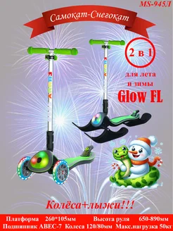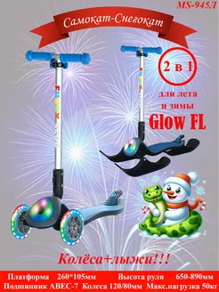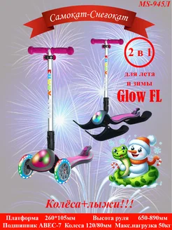 Самокат-снегокат Glow FL MS-945Л c подсвечивающейся декой