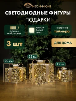 Набор светодиодных фигур Подарки 3 штуки теплый белый