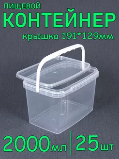 Пластиковое ведро с ручкой, 2000 мл 25 шт, с крышкой