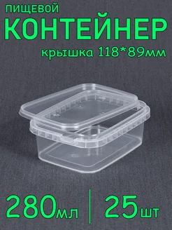 Прямоугольный пластиковый контейнер с крышкой, 280 мл 25 шт