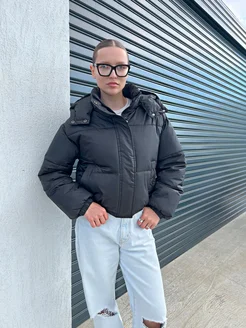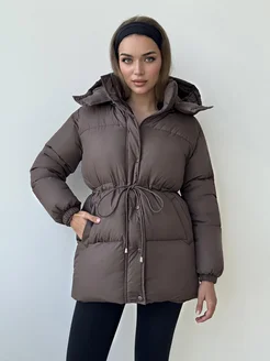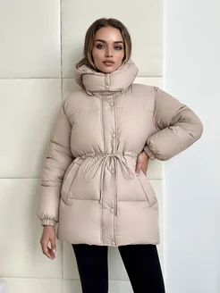 Куртка оверсайз зимняя с утяжкой на талии удлиненная