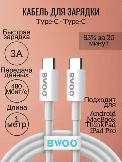Кабель type-c для быстрой зарядки телефона 1 м, 100 Вт