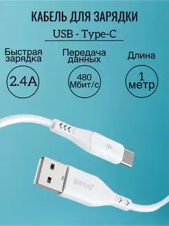 Кабель USB type-c для быстрой зарядки телефона 1 м 2,4A