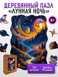 Фигурный деревянный пазл Лунная ночь для детей и взрослых
