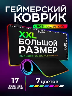 Игровой коврик для мыши и клавиатуры с подсветкой 800х300