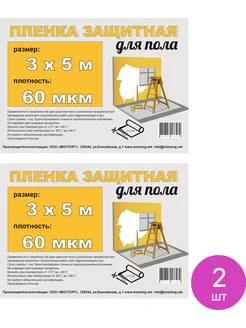 Пленка укрывная для пола полиэтиленовая, 3×5м, 60мкм, 2 шт
