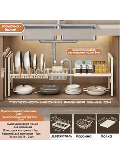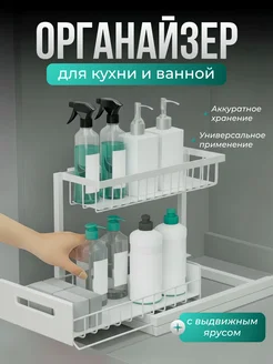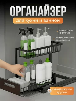 Раздвижная кухонная полка под раковину, двухъярусная