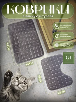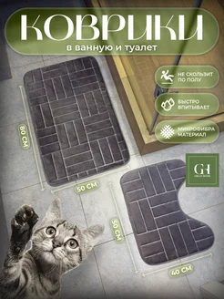 Коврик для ванной и туалета противоскользящий, комплект