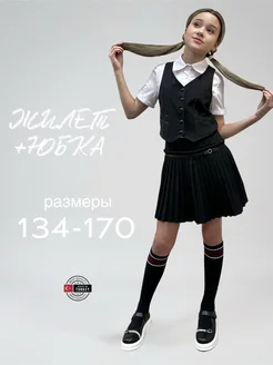 Комплект жилет с юбкой плиссе костюм школьный