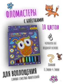 Фломастеры для рисования детские с блестками набор 10 цветов