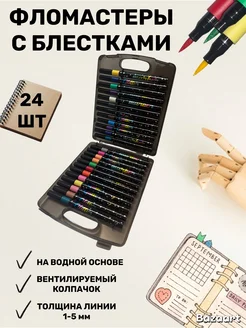 Фломастеры с блестками на водной основе для рисования 24 шт