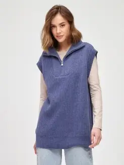 Жилет вязаный оверсайз удлиненный с горлом на молнии