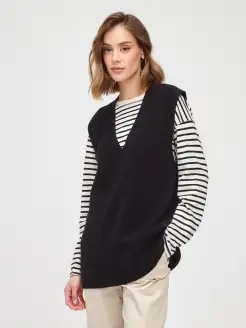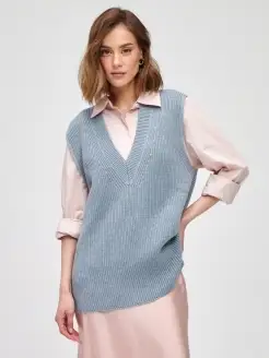 Жилет вязаный оверсайз удлиненный безрукавка в школу