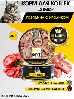Корм для кошек влажный Говядина с кроликом 12 шт по 100 г