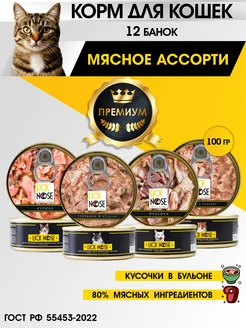 Корм для кошек влажный Мясное Ассорти 12 шт по 100 г