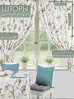 Комплект штор на кухню 2 шт по 130х180 см хлопковые короткие