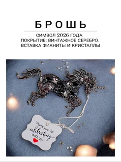 Брошь кулон Лошадь с камнями под серебро символ 2026 года