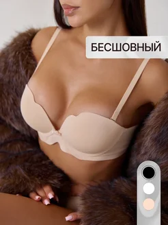 Бюстгальтер без косточек бесшовный с пушапом бандо