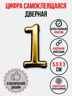 Цифра на дверь 1 золотая (номер квартиры) один
