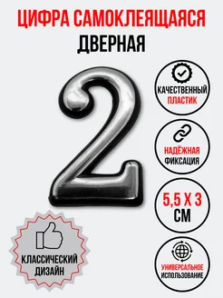 Цифра на дверь 2 хром (номер квартиры) два