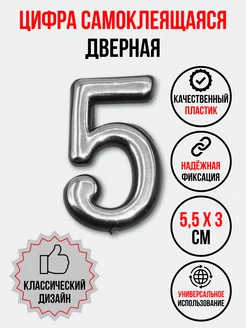Цифра на дверь 5 хром (номер квартиры) пять