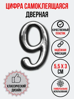 Цифра на дверь 9 хром (номер квартиры) девять