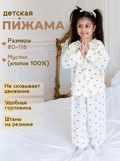 Пижама детская из муслина с брюками и рубашкой с мишками