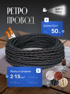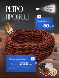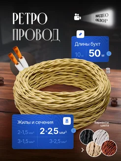 Ретро проводка 50м 2х2,5мм2 витой кабель винтажный