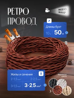 Ретро проводка 50м 3х2,5мм2 витой кабель винтажный