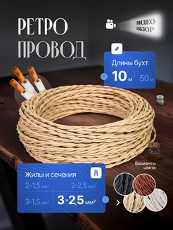 Ретро проводка 10м 3х2,5мм2 витой кабель винтажный