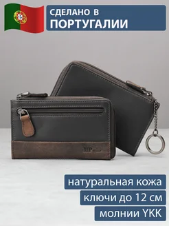 Ключница из натуральной кожи с карманом для карт на молнии