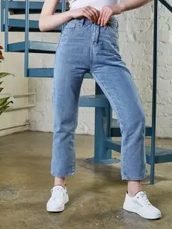 Джинсы женские момы с высокой посадкой прямые широкие модные