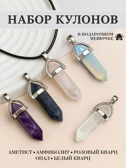 Набор кулонов с камнями аметист, кварц, амфиболит