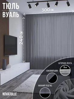 Тюль вуаль 300х240 кухонный в спальню и гостиную графит
