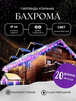 Гирлянда уличная бахрома на дом садовая новогодняя 20м