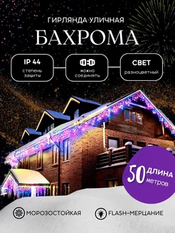 Гирлянда уличная бахрома на дом садовая новогодняя 50 м
