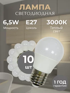 Лампа светодиодная LED Е27-6,5W-3000К 10 штук теплый свет