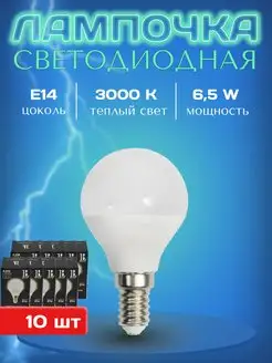 Лампочка светодиодная Е14 теплый свет 3000К led 10 шт