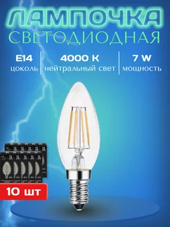 Лампа светодиодная филамент Е14 нейтральный свет 4000К 10шт