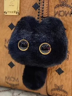 Брелок аниме мягкий Черный кот с хвостом с пищалкой