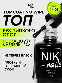 Прозрачный топ для маникюра ногтей Top Coat no wipe 15г