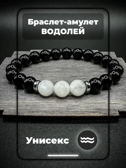 Браслет-амулет для Водолея Агат Черный и Лунный камень