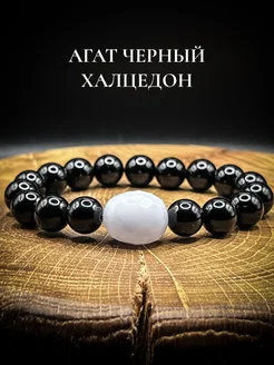 Браслет Агат Черный (ТОН) натуральный 10 мм и Халцедон