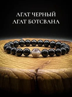 Браслет Агат Черный (ТОН) натуральный 8 мм и Агат Ботсвана