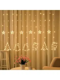 Гирлянла - штора на окно Новогодняя (елочки - олени_