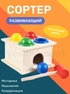 Сортер-стучалка развивающая игрушка для малышей из дерева